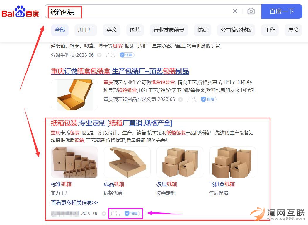 卡茂包裝制品公司《競價廣告位》推廣服務(wù),官網(wǎng)樣式展現(xiàn)