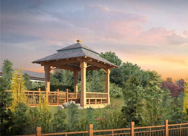 在搭建涼亭之前,要首先測(cè)量自家院子的大小,是否還有空間可以容納下一個(gè)涼亭。涼亭的大小也需要與院子大小比例相協(xié)調(diào),這樣更相得益彰。在院子里為涼亭選址時(shí),建議是選擇平地活著是臨水的地方,有些獨(dú)棟別墅也可以建造在半山坡上。