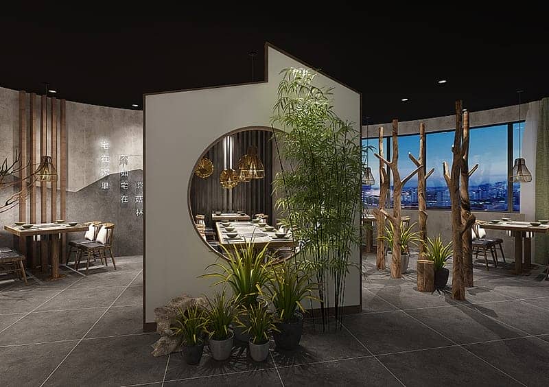 隨著80,90主力消費(fèi)群體的壯大,火鍋店設(shè)計(jì)風(fēng)格也要逐步跟隨著主力消費(fèi)群體的喜好而改變。對(duì)于火鍋店裝修而言,傳統(tǒng)的中式風(fēng)格是盡對(duì)不會(huì)出問題的,但傳統(tǒng)的中式風(fēng)格老火鍋店也缺少了特色。今天為大家推薦一個(gè)新中式特色生態(tài)火鍋店的設(shè)計(jì)案例,整體風(fēng)格清新但又沒有丟掉中式的格調(diào),以竹為主題,因此在設(shè)計(jì)中融進(jìn)了很多仿真竹和竹子的翠綠色。