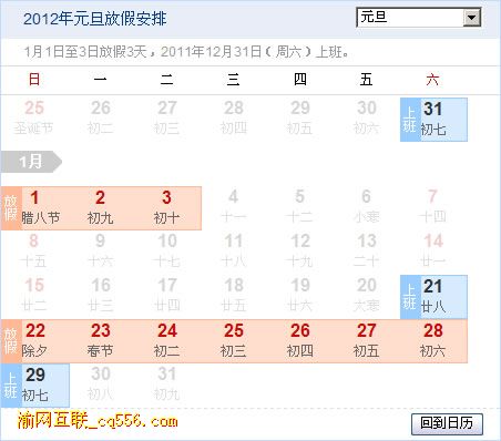 關(guān)于2012年渝網(wǎng)互聯(lián)元旦放假安排的通知