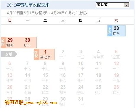 根據(jù)《國務(wù)院關(guān)于修改〈全國年節(jié)及紀(jì)念日放假辦法〉的決定》,重慶網(wǎng)站建設(shè)公司渝網(wǎng)互聯(lián)“五一”國際勞動節(jié)放假安排如下:“五一”國際勞動節(jié):4月29日—5月1日放假,共3天。4月28日(星期六)正常上班。