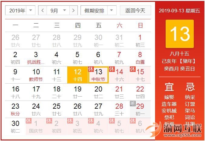 2019年中秋節(jié)放假時間安排