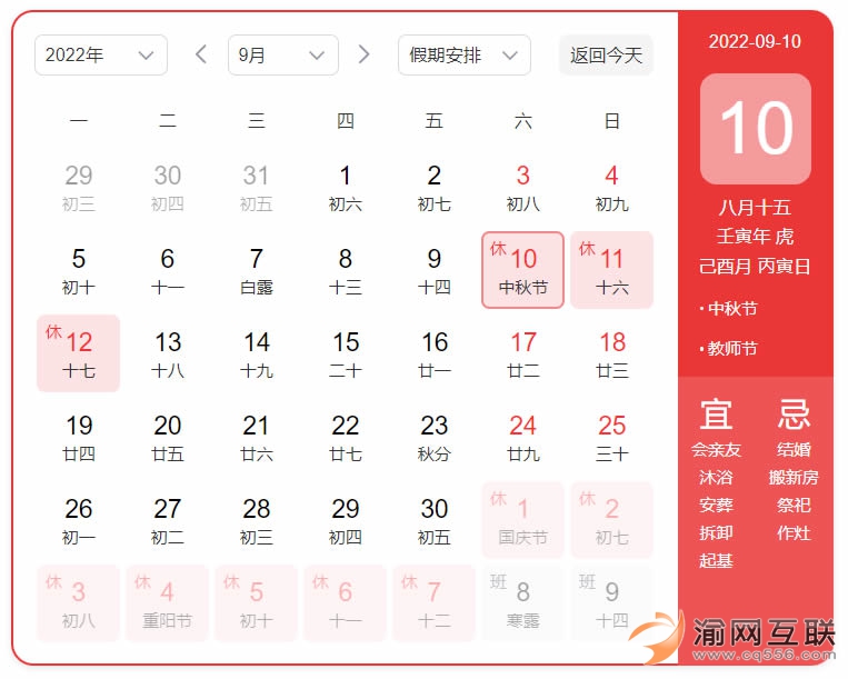 2022年9月10日至9月12日休假,9月13日(周二)恢復(fù)上班。