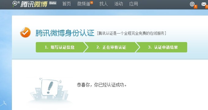 騰訊微博企業(yè)認(rèn)證申請(qǐng)成功!