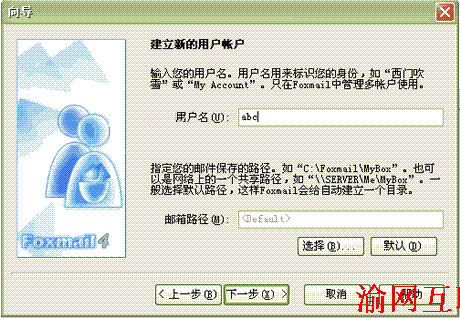 3.點擊下一步彈出以下窗口,在用戶名處填入您喜歡的名字,如:abc;