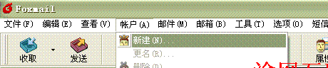 2.如下圖所示,點擊帳戶 -> 新建,彈出Foxmail用戶向?qū)?